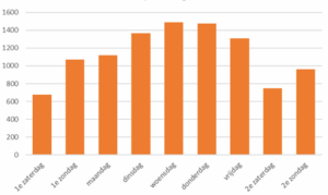 Sommige dagen zijn traditioneel drukker dan andere. Bekijk de gemiddelde bezoekersaantallen over de recente edities. Zoals je ziet zijn de zaterdagen over het algemeen het rustigst. Dinsdag, woensdag en donderdag zijn meestal drukke dagen.