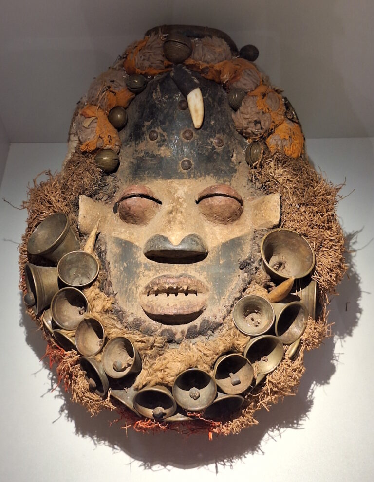 ● Foto: Museum Klok & Peel heeft prachtige maskers in zijn collectie, zoals deze van het Dan-volk uit Ivoorkust. Dit masker uit de vorige eeuw werd gedragen tijdens rituele dansen. De belletjes riepen de geest op van de godheid, die vervolgens bezit nam van het masker.